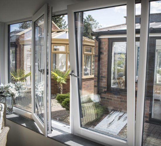 Inspired by Scandinavian design, tilt and turn windows have a hinge mechanism that allows the window to open in two ways. Tilt the window from the bottom for ventilation or turn for the window to fully open it inwards. This cleverly designed hinge mechanism makes uPVC tilt and turn windows great for ventilation and fresh air, while the inward opening also helps make better use of your outdoor space or balcony. When in the ’tilt’ position you can gently circulate air while keeping the lower section securely closed. When in the ‘turn’ position, you can completely circulate the air in a room, with a full window opening. This can be especially useful for insurance purposes, as they are large enough to be used as an exit in an emergency. When choosing tilt and turn windows, you can enjoy the benefits of controlled ventilation while maintaining the necessary precautions to protect your property. For added safety and security, our tilt/turn windows can be equipped with locking handles and child restrictors.